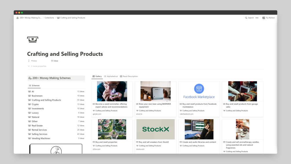 Discover the secret to making money with the 200+ Money Making Schemes! This comprehensive directory includes detailed and curated content, with links to over 200 ideas and schemes to help you get started.